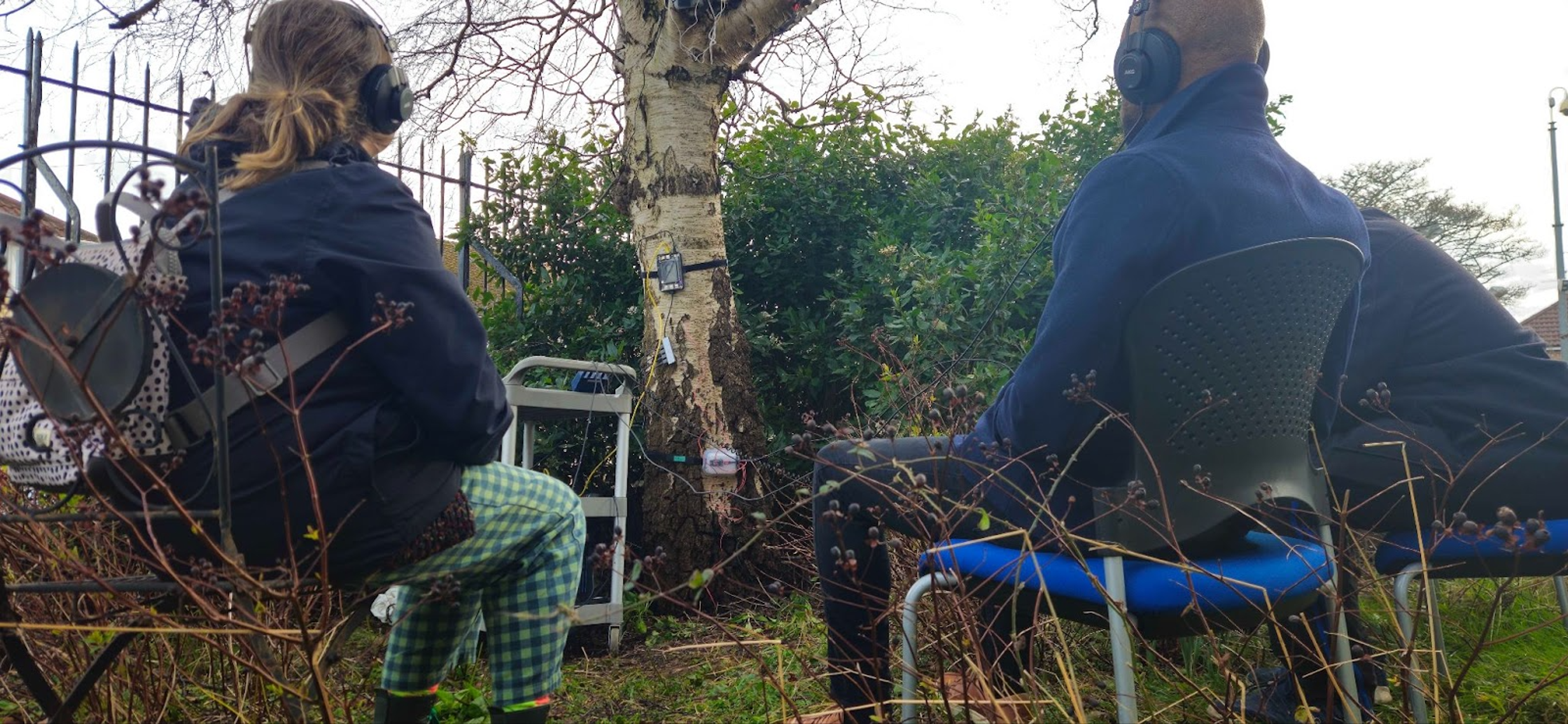 Session two of the user testing moved towards a mid-level prototype experience, which drew from real-time sensor data from trees. The audio component of Deepwood had significantly improved since the first user session. This allowed users to listen to audio from various biosensors (controlled by Deepwood’s sound designer) around a Hawthorn tree at the Springfield Allotments, whilst Tom Bailey, from Mechanimal, described their experience.