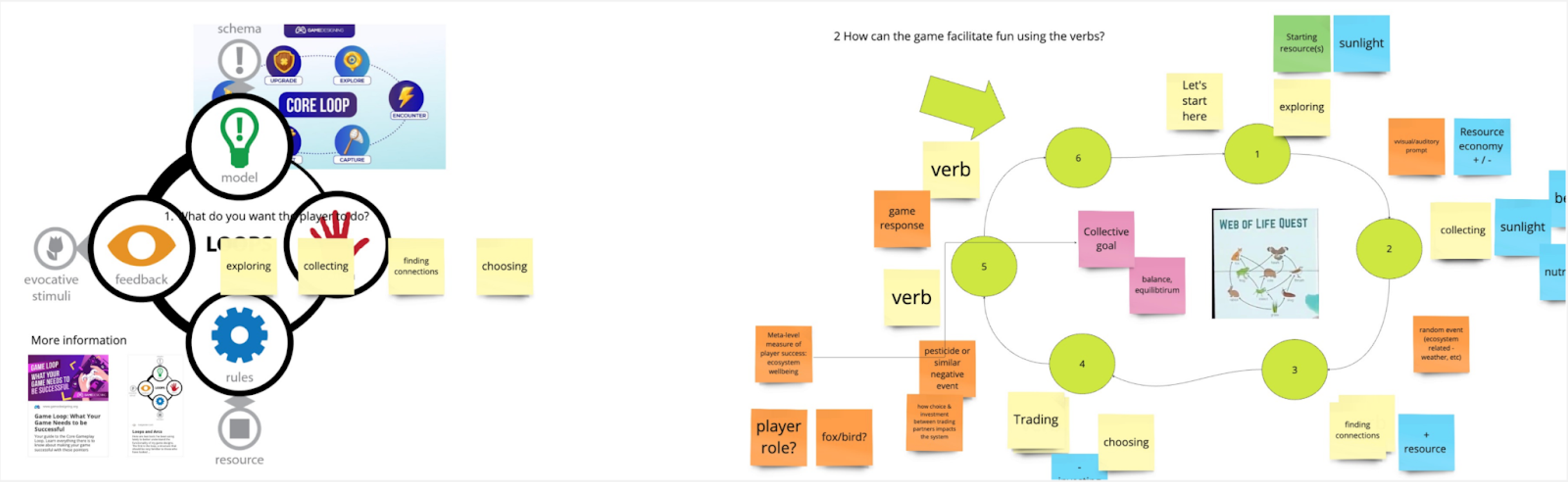 Part of the programme offering from Digital Catapult was time with some of their experts across various fields. We were lucky enough to work with Aki Jarvinen, one of Digital Catapult's lead technologists and a gameplay expert! Aki led us through the basics of creating our game player loop for the Web of Life Quest, considering rules, resources, stimuli and feedback.