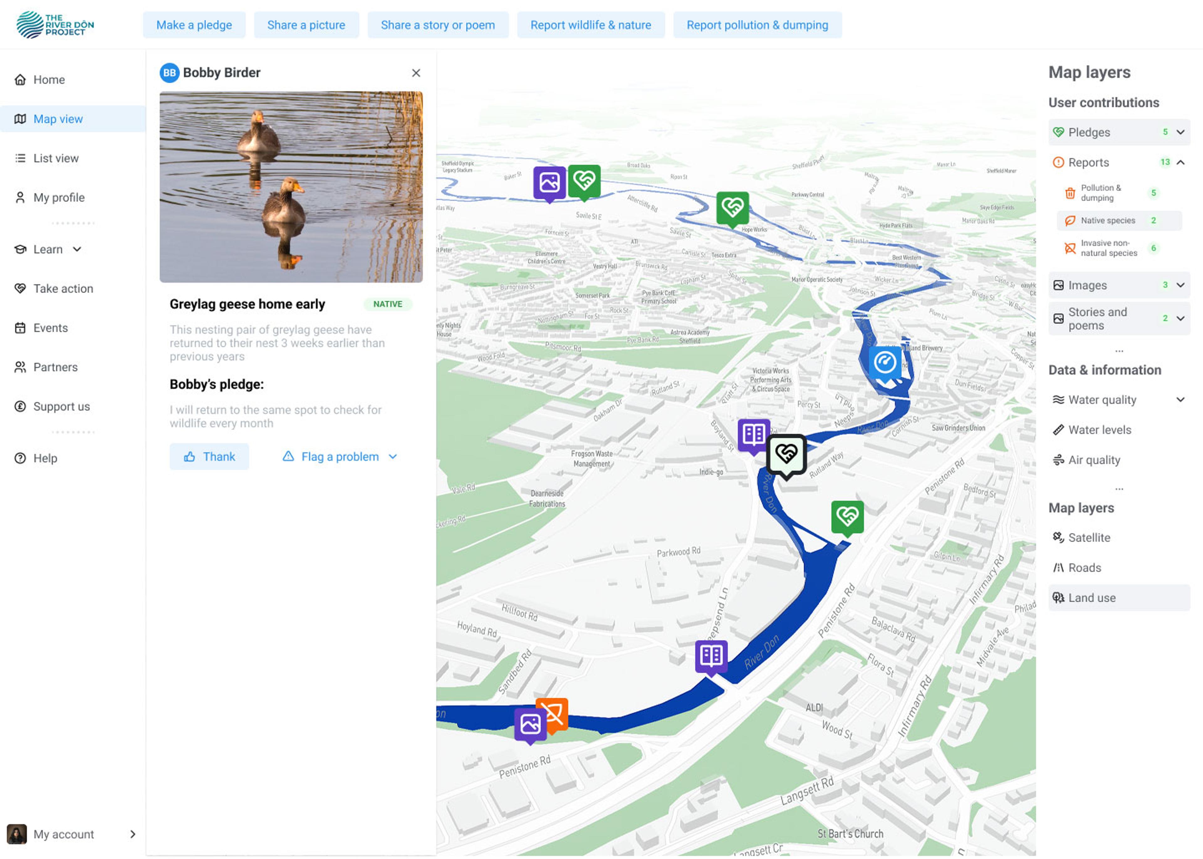A digital engagement platform helping people notice, value and care for their local waterways throughout South Yorkshire.