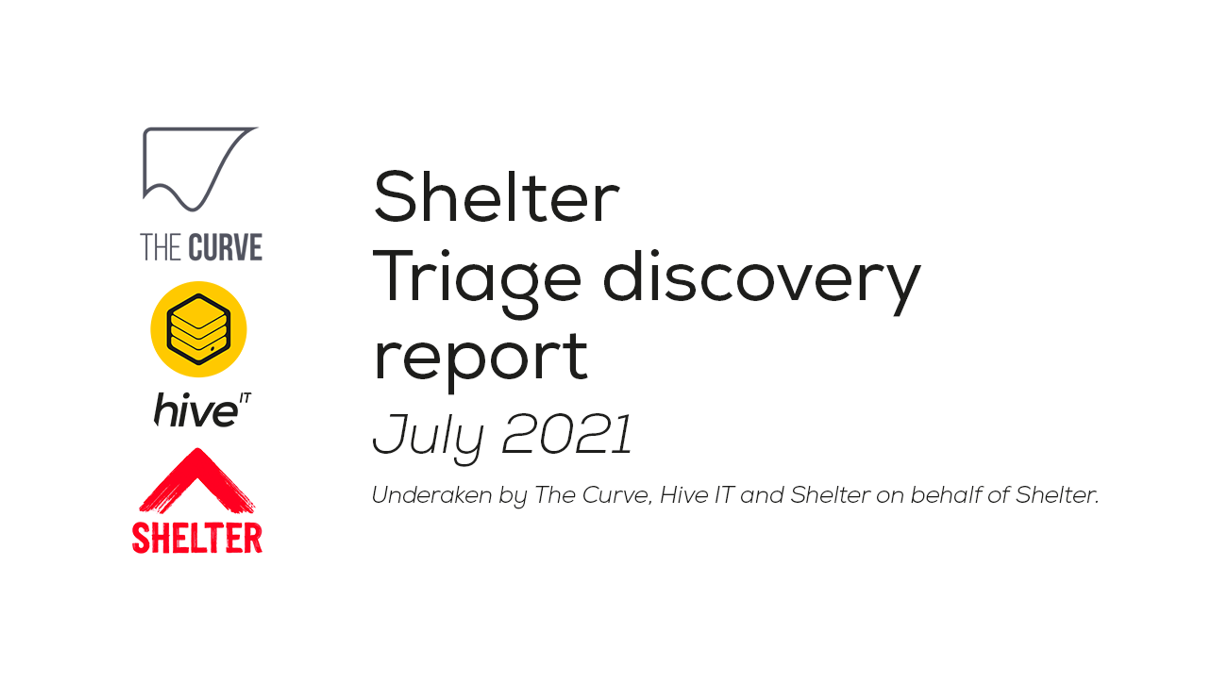 The Curve and Hive IT were commissioned by Shelter to carry out a Discovery research project to better understand the needs of users of Shelter, and to identify options for the future direction of the service to support their users and identified business needs.